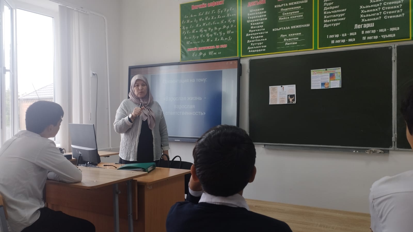 Педагог -психолог провела классный час по теме: "Взрослая жизнь - взрослая ответственность". МБОУ ООШ с.Саясан"