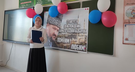 23.08.2024В соответствии с планом работы МБОУ «ООШ с. Саясан, на основании приказа и в целях воспитания у обучающихся чувства любви, уважения, памяти и благодарности за все, что сделал для своего народа А-Х.Кадыров.