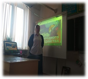В 1-9 классах проведены беседы«В единении – сила!». Целью данных классных часов являлось: – познакомить обучающихся с историей праздника; – подчеркнуть значимость событий 1612 года для дальнейшей истории нашей страны; – воспитывать чувство патриотизма, любви к Родине.