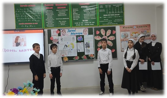 24.11.202424 ноября 2023 г. в МБОУ «ООШ с. Саясан» прошел праздник, посвященный международному Дню матери. День матери - это один из самых трогательных праздников, потому что каждый из нас несет в своей душе единственный и неповторимый образ – образ своей мамы, которая все поймет, простит, всегда пожалеет и будет беззаветно любить несмотря ни на что.