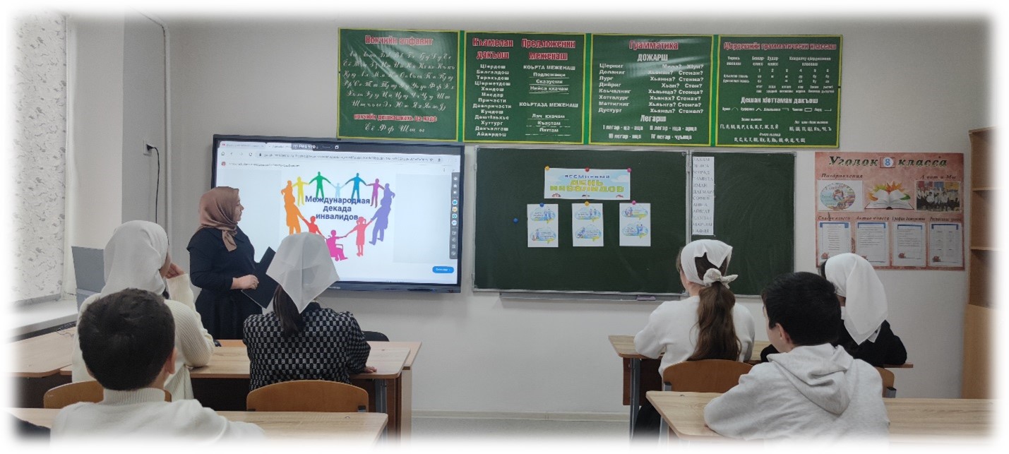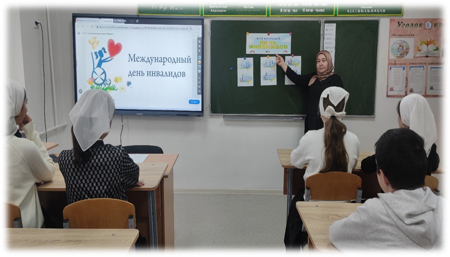 Классными руководителями 1-9 классов проведены беседы с учащимися «Легко ли быть не таким, как все», «Умеешь ли ты дружить». Показаны презентация о Международном дне инвалидов, который напоминает всем о нуждающихся в поддержке и помощи, но в то же время мужественных, крепких духом людях, проявляющих таланты в профессиональном мастерстве, изобразительном, самодеятельном творчестве, спорте.