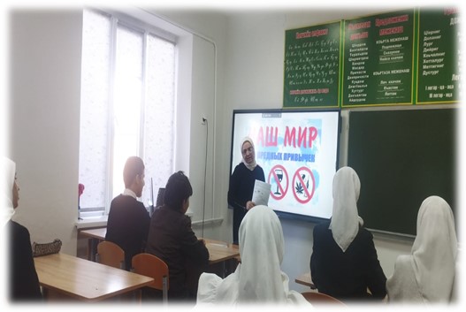 06.12.2024г. классный руководитель Тактабаева А.А. провела беседу для учащихся 8 класса на тему: «Влияние наркотиков на организм человека», охват-12 чел.