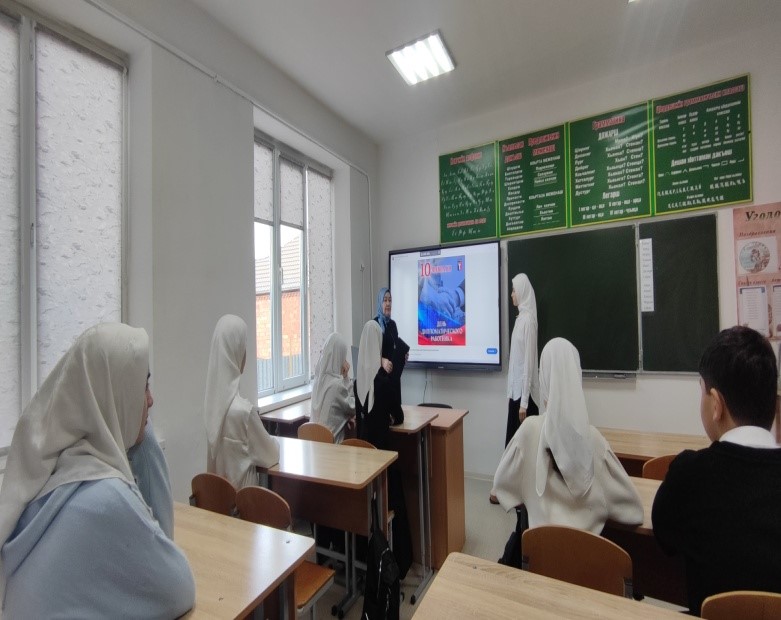 Во взаимодействии с отделом в Ножай-Юртовском районе УФСБ России по Чеченской Республике 10.02.25г. зам.директора по ВР проведен кл.час, посвященный Дню дипломатического работника