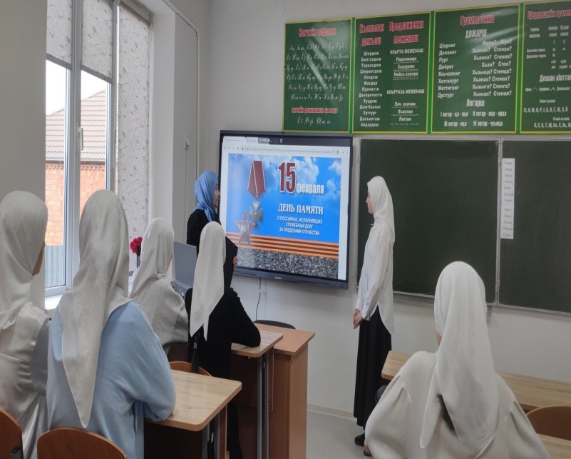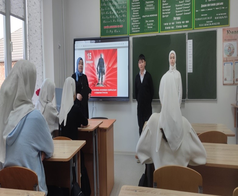 Во взаимодействии с отделом в Ножай-Юртовском районе УФСБ России по Чеченской Республике 05.02.2025г. в школе прошло мероприятие, посвященное памяти россиян, исполнявших служебный долг за пределами Отечества "Эхо Афганской войны"