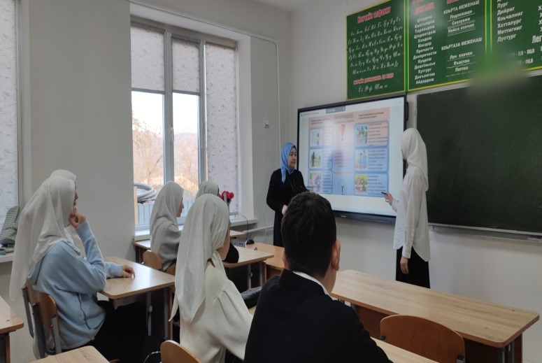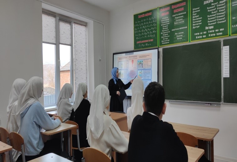 Во взаимодействии отделом в Ножай-Юртовском районе УФСБ России по Чеченской Республике 03.02.2025г. в 8 классе прошел кл.час по профилактике терроризма " Террористическая безопасность"