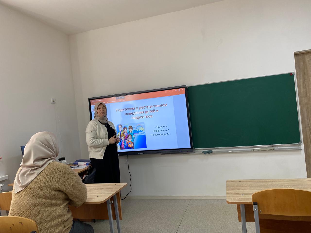 В МБОУ "ООШ с.Саясан" педагог-психолог провела цикл семинаров по "Организации работы по профилактике деструктивного поведения обучающихся"