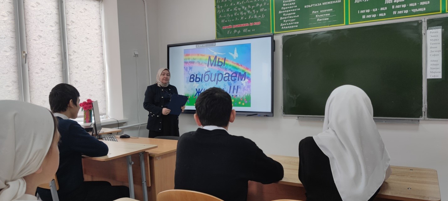 03.02.2025г. классный руководитель Насуханова А.В. провела для учащихся 6класса беседу на тему: «Мы выбираем жизнь», охват- 10 чел.
