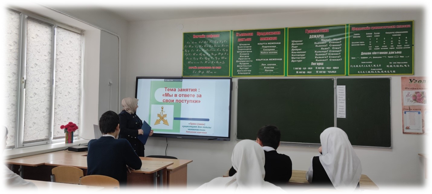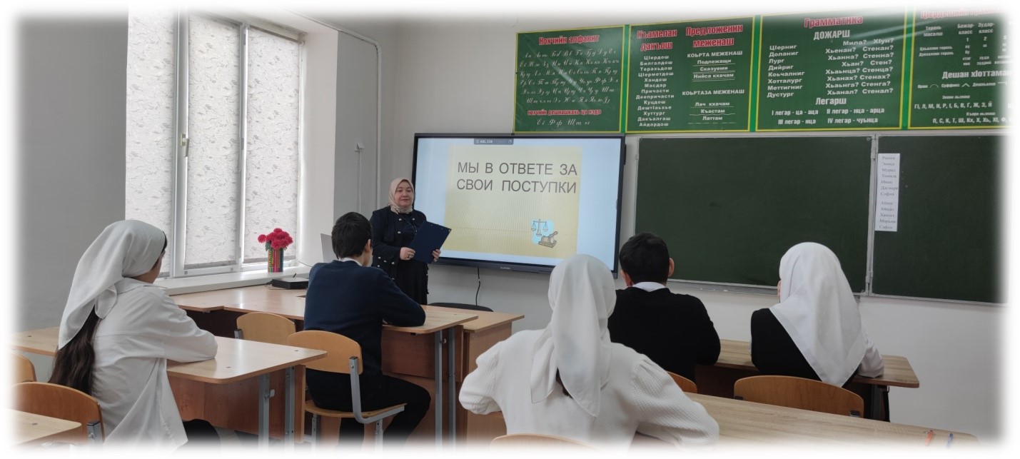 06.02.2025г. зам.дир. по ВР Насуханова А.В. провела для учащихся 7 класса беседу на тему: «Мы в ответе за свои поступки», охват- 6 чел.