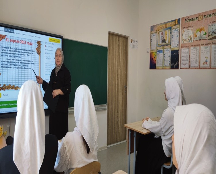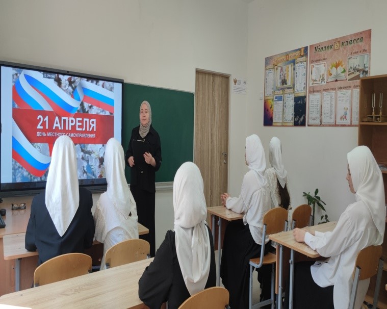 19.04.2025г. зам. дир. по ВР Насуханова А.В. провела беседу для учащихся 8-9 классов на тему: «Роль местного самоуправления в современной России», охват-16 чел.