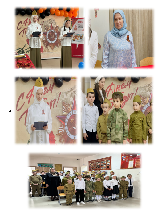 09.05.202509.05.2025г в МБОУ «ООШ им. Аласханова Т-А. А. с. Саясан» прошла Торжественная Линейка Памяти, посвященная 80-летию со Дня Победы в Великой Отечественной войне. День Победы - это великий день, который напоминает нам о трудностях и подвигах наших предков во время Великой Отечественной войны. И в этот день особенно важно помнить и чтить их память. В поздравительном обращении директор школы Вера Васильевна Козлова поздравила всех присутствующих с наступающим праздником и рассказала о том, как важно чтить память всех, кто на своих плечах вынес ужасы войны и приблизил День Победы, а так же отметила, что в каждой российской семье есть герои, которые сейчас рядом с нами, чьи портреты в наших руках.
