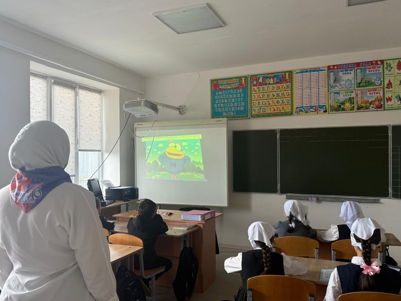 В рамках окончания трека "Орленок-лидер в нашей школе прошел кинолекторий.Ребята посмотрели мультфильм "Смешарики",вместе с наставницей,учительницей Разет Исрапиловой. А после окончания просмотра провели небольшую зарядку.